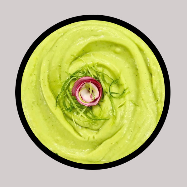 Amasse o abacate com um garfo, acrescente o alho socado, o suco do limão, o sal e o azeite a gosto.